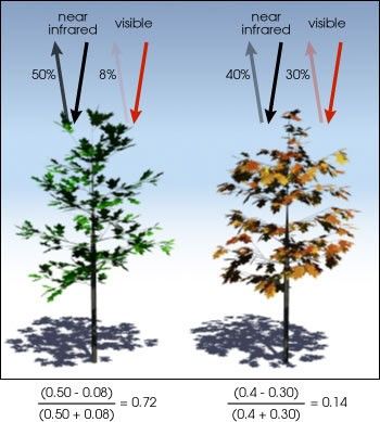 NDVI = (NIR — VIS)/(NIR + VIS)