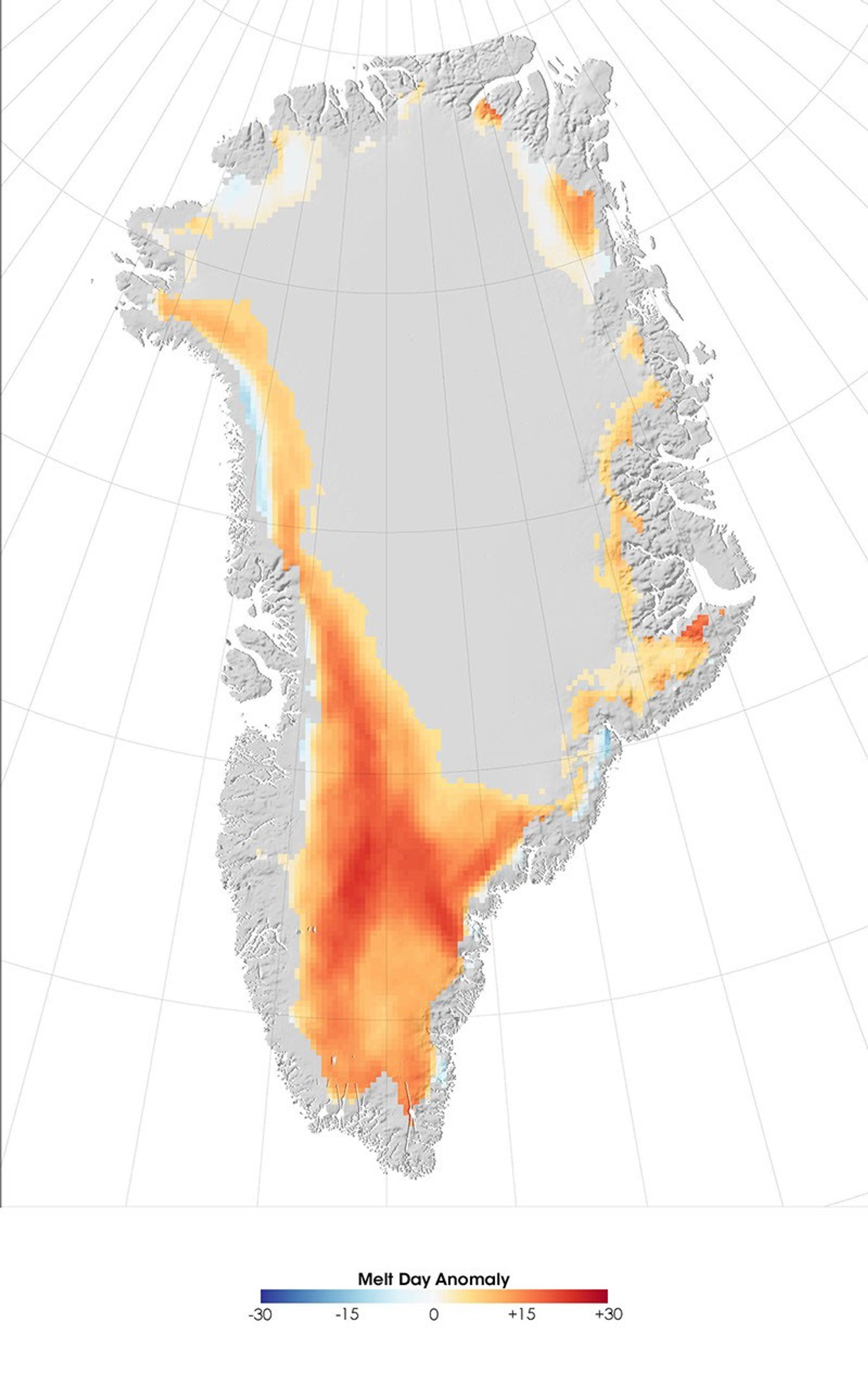 - Melting Days on Greenland. NASA Earth Observatory. Accessed November 29, 2007.