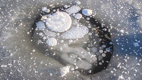 Katey Walter Anthony, a hydrologist at the University of Alaska–Fairbanks, has mapped more than 150,000 methane seeps near the boundaries of thawing permafrost and receding glaciers. The seeps appear as holes in frozen lakes and rivers that, on close inspection, are bubbling with gas. Her team has found that they can actually light such seeps on fire.