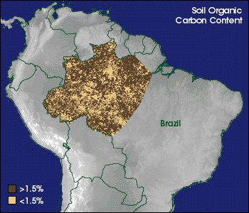 Today, Levine is using her data-driven modeling approach to map soil and vegetation types across Amazonia, South America. Her goal is to find out how much carbon is stored in the soils there. Using data from 200 sites on the ground in the Brazilian Amazon, Levine and her colleagues "trained" a neural network using soil, land cover data, and satellite imagery. (Levine’s model uses a program that can improve itself, or learn, by comparing its predictions to real measurements and then revising its processing algorithm. The process of preparing a given model to make certain types of predictions is called "training the model," which in this case is Levine’s neural network.) Levine then used the trained model to estimate the amount of soil carbon present in the Amazon region based on satellite imagery alone (Levine and Kimes 1998). Next she is planning to generate soil-carbon maps for a larger portion of the Amazon region--a task that would take many years to complete if she relied solely on ground-based measurements.