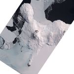 On December 31, 2013, the Advanced Spaceborne Thermal Emission and Reflection Radiometer (ASTER) on NASA’s Terra satellite acquired images of the western end of Ross Island in mid-summer. The top image is built from a combination of infrared, red, and green wavelengths of light. The second image uses just thermal infrared wavelengths and reveals where the landscape is warmer (bright white) or cooler (black). The lava lake stands out amidst the mostly shadowed interior of the caldera, as do areas on the island where bare rock is exposed to sunlight instead of being buried under snow and ice.
