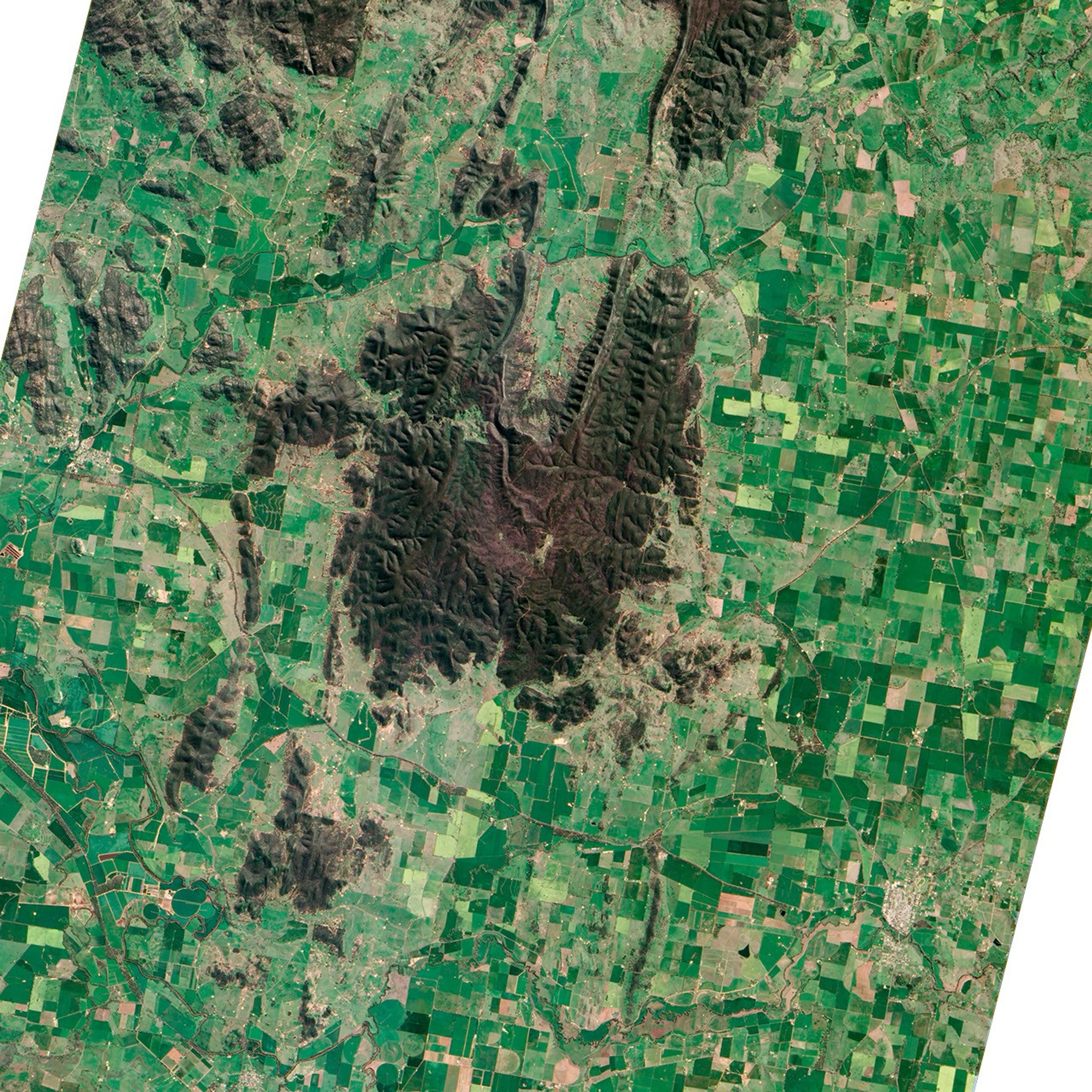 This park landscape has been a boon to native vegetation mostly because the rugged land was too much trouble for farmers and ranchers to clear. So while the low-lying landscape around the park is cultivated for agriculture, native vegetation has persisted inside the park—resembling a giant hoof print of dark green.