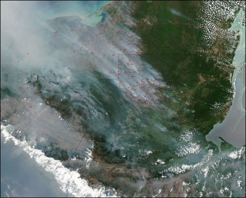 Combining space-based measurements of a range of plant properties collected by the Moderate Resolution Imaging Spectroradiometer (MODIS) with a suite of other satellite and surface-based measurements, NASA scientists produce composite maps of our world’s “net primary production” every 8 days. This new measurement is called net production because it indicates how much carbon dioxide is taken in by vegetation during photosynthesis minus how much is given off during respiration. Scientists expect this global measure of the biological productivity of plants to yield new insights into how the Earth’s carbon cycle works, a critical step toward solving the climate change puzzle.