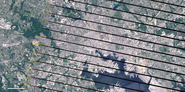 “It’s sort of like the image was on a piece of fabric, and it got wrinkled up,” says Masek. Smoothing the images out is critical for scientists who want to compare images of the same area over time or to combine satellite images with other types of geographic data, such population density, land ownership, or roads.