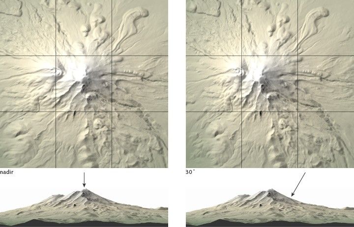 Rugged terrain is a problem, too. If scientists don’t account for the topography when they turn the satellite data into images, the same landscape feature might look compressed in one image and stretched out in another, or it may appear to have shifted location by a several hundreds meters from one image to the next.