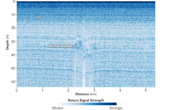 NASA Earth Observatory images by Michala Garrison and Jesse Allen, using UAVSAR data and imagery provided by Chad Greene (NASA/JPL-Caltech) and IceBridge UHF ice-penetrating radar data provided by Joseph MacGregor (NASA/GSFC). Historical photograph courtesy of the National Archives, photo ID 404791598 . Story by Kathryn Hansen.