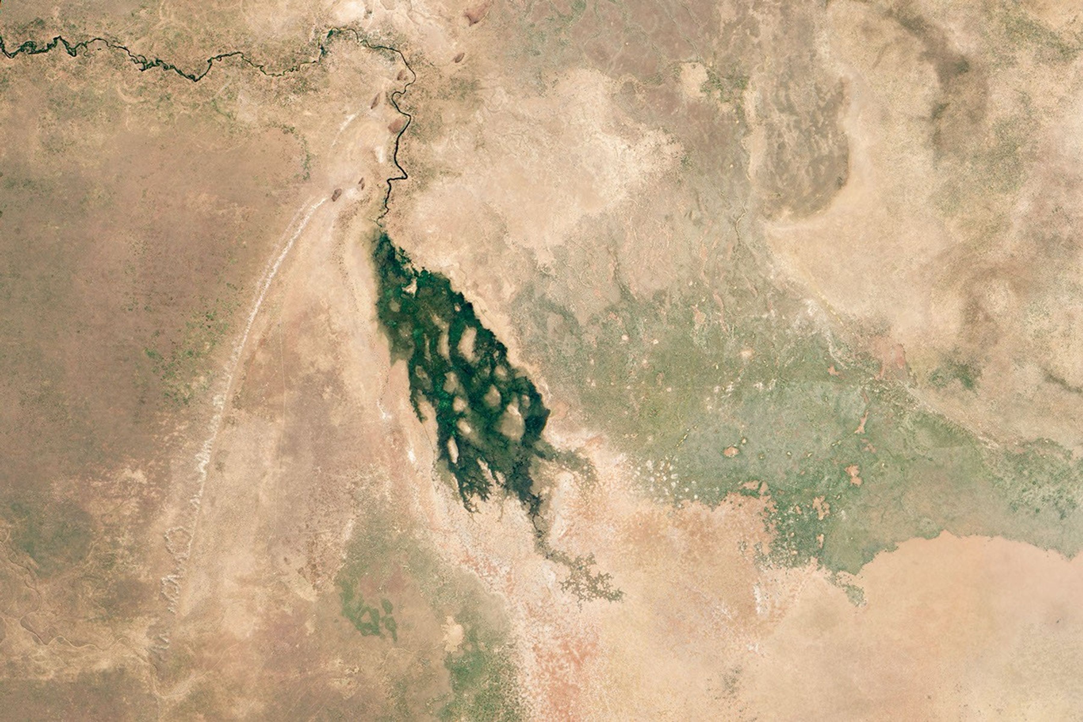 The Okavango Delta is an oasis in Africa’s Kalahari Desert. When the Kalahari reaches its driest phase—when plants wither and animals hunt for drinking water—the Okavango provides it. But starting in 2009, the delta provided more than usual, and excess water overflowed into other land depressions in the region.