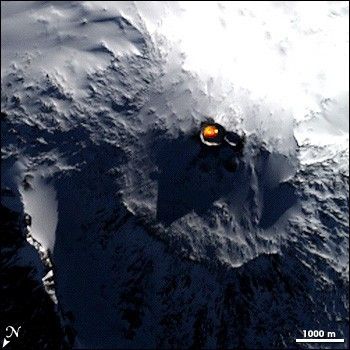 Davies is also working with scientists at the Hawaiian Volcano Observatory and Mt. Erebus Volcano Observatory to build more model data into the sensor web system, allowing it to be triggered not just by ongoing eruptions but also by precursors to eruptions. “When magma moves up from depth in a volcano, the volcano bulges,” he explains. Ground-based tilt meters that measure changes in slope steepness could detect these bulges and trigger a satellite observation.