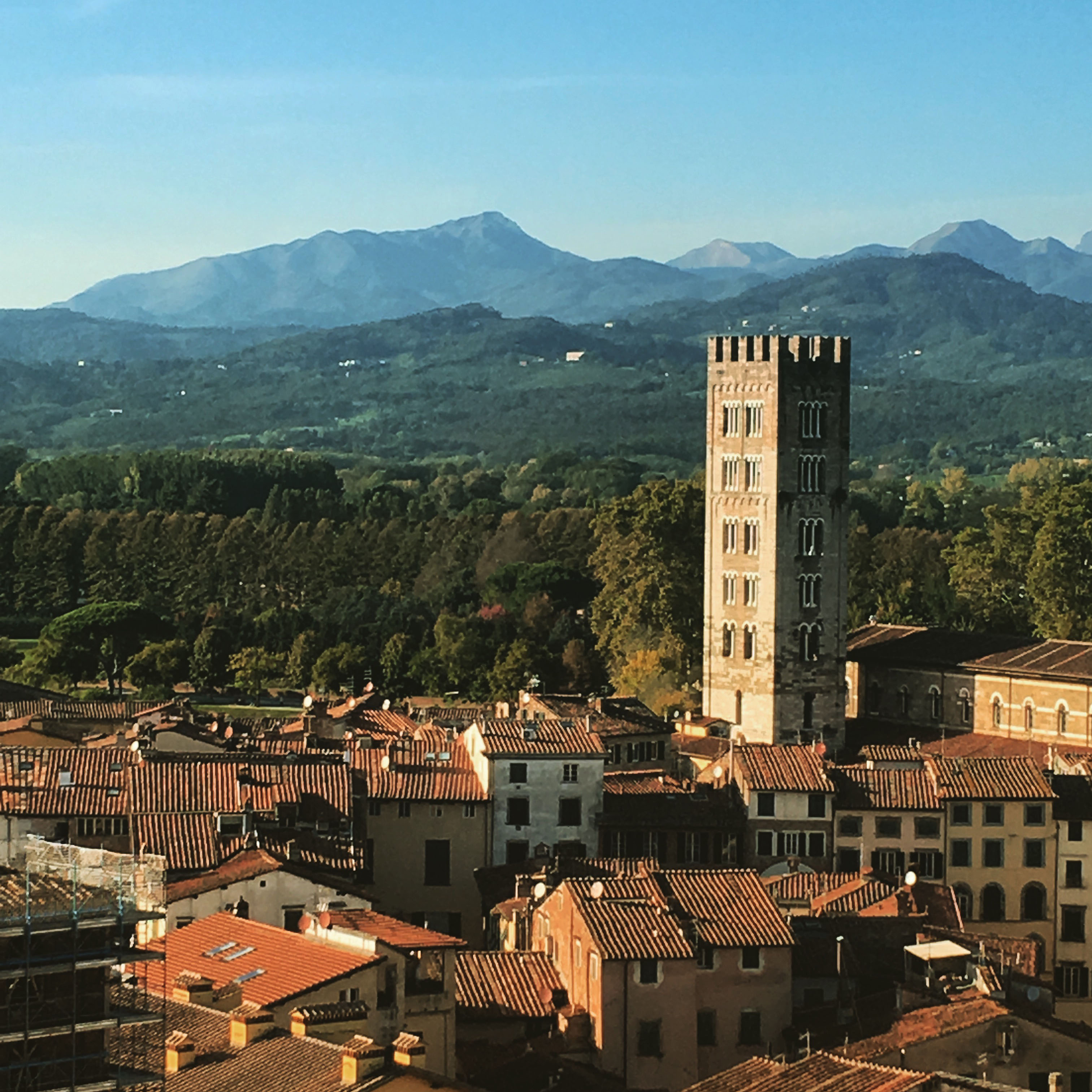 In the images above, an astronaut captured a glimpse of the coastline near the Tuscany Region of Italy. From below, a photographer shared a view of a cathedral towering over the city of Lucca.