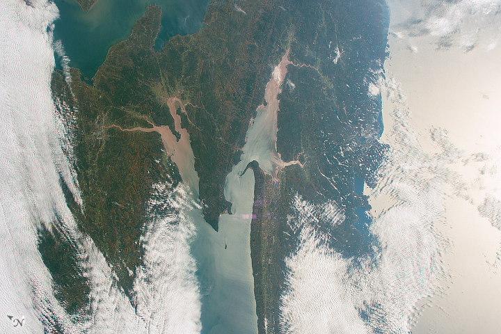 These astronaut photographs were acquired on October 23, 2017, with a Nikon D4 digital camera and are provided by the ISS Crew Earth Observations Facility and the Earth Science and Remote Sensing Unit, Johnson Space Center. The images were taken by members of the Expedition 53 crew. The images have been cropped and enhanced to improve contrast, and lens artifacts have been removed. The International Space Station Program supports the laboratory as part of the ISS National Lab to help astronauts take pictures of Earth that will be of the greatest value to scientists and the public, and to make those images freely available on the Internet. Additional images taken by astronauts and cosmonauts can be viewed at the NASA/JSC Gateway to Astronaut Photography of Earth. Caption by Andi Hollier, Hx5, JETS Contract at NASA-JSC, with Mike Carlowicz, NASA Earth Observatory.