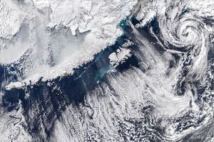 Meteorologists break convective clouds into two main groups: closed-celled and open-celled. On February 1, 2016, the Moderate Resolution Imaging Spectroradiometer on NASA’s Terra satellite acquired an image that juxtaposes both types. The upper image shows an expanse of closed-celled clouds, while the lower image offers a more detailed view of open-celled clouds.