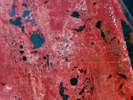 The spread of development is visible in these false-color images of greater Orlando. Acquired with the Landsat series of satellites, the scenes are shown in green, red, and near-infrared light, a combination that helps differentiate components of the landscape. Water is black, vegetation is red, and urban areas are brown to gray.