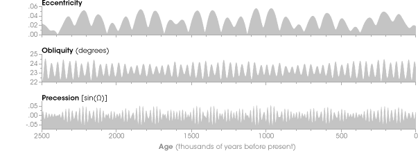 - Berger, A. (1992). Orbital Variations and Insolation Database. IGBP PAGES/World Data Center-A for Paleoclimatology Data Contribution Series #92-007. Boulder, Colorado: NOAA/NGDC Paleoclimatology Program.