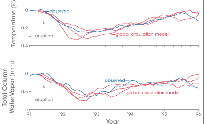 Mount Pinatubo’s eruption was the largest eruption ever observed by satellite. Satellites also collected data about the effects of the eruption on the climate, providing climate modelers a wealth of information. Scientists eagerly plugged the sulfate measurements from the satellite data into climate models—if the models mimicked reality, they were probably accurate.