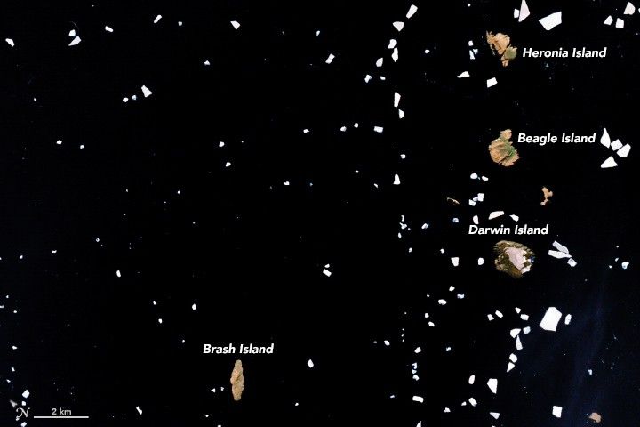 By using an automated technique that keys in on penguin guano, Lynch and Schwaller used Landsat 7 images to identify roughly 166,000 penguins on Brash Island, 23,000 on Earle Island, and 7,000 on Darwin Island that were not previously accounted for.