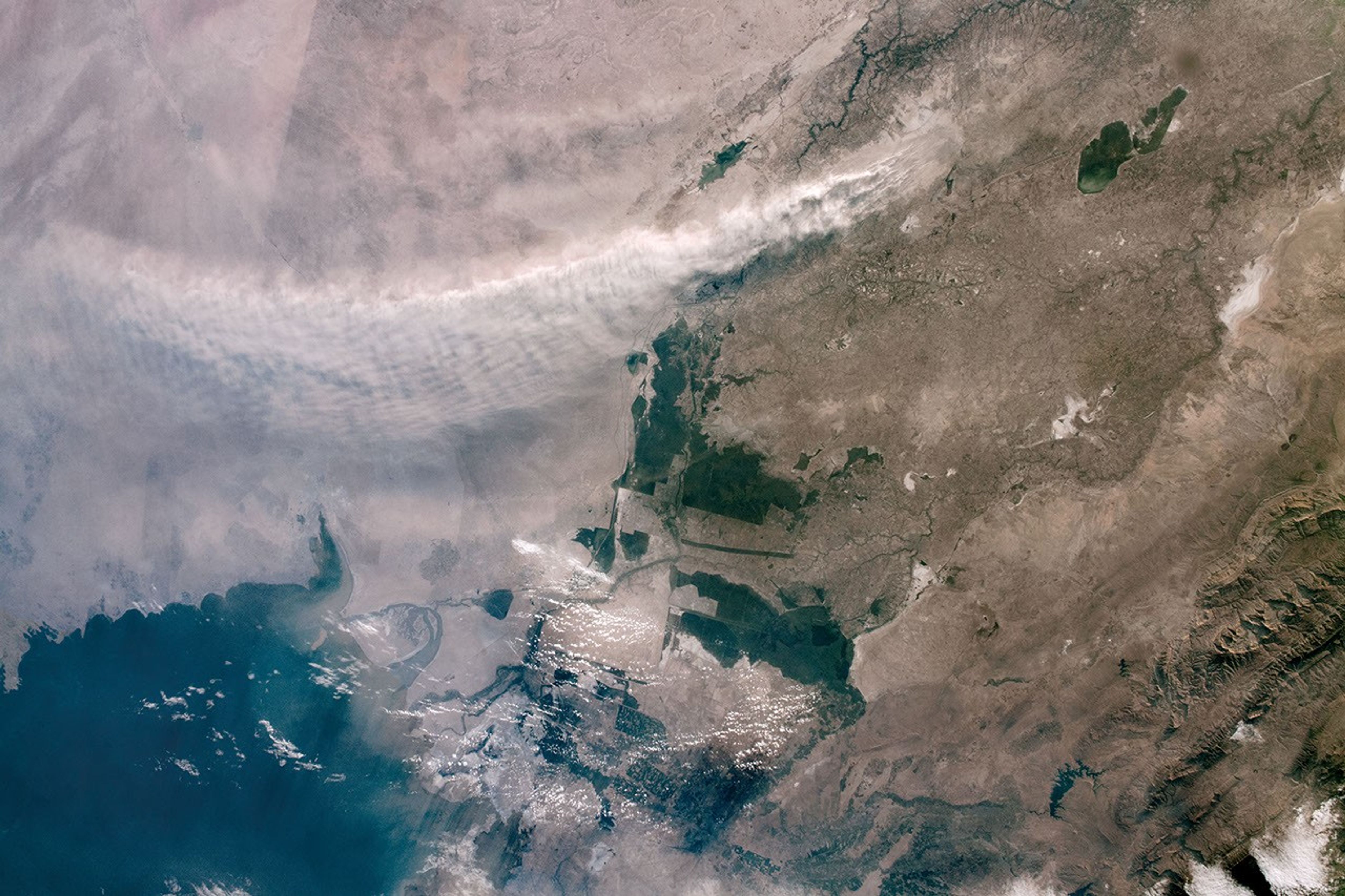 An astronaut aboard the International Space Station (ISS) took these photographs of southern Iraq and Saudi Arabia during the summer dust-storm season in the Persian Gulf.