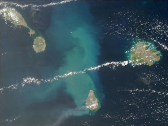 Some of the deepest canyons in the world cut west to the Pacific from the high crest of the Andes Mountains in Peru. This dramatic image taken from the International Space Station provides a birds-eye view down the canyons of the Rio Camana and the Rio Ocona. The low early morning sun highlights the extreme topography created by rapidly uplifting mountains and powerful water erosion by water dropping nearly 10,000 feet (more than 3000 m) in this view. At the edge of the image is the snowy flanks of Nevado Coropuna, the highest mountain in the Cordillera Occidental (6613 meters).