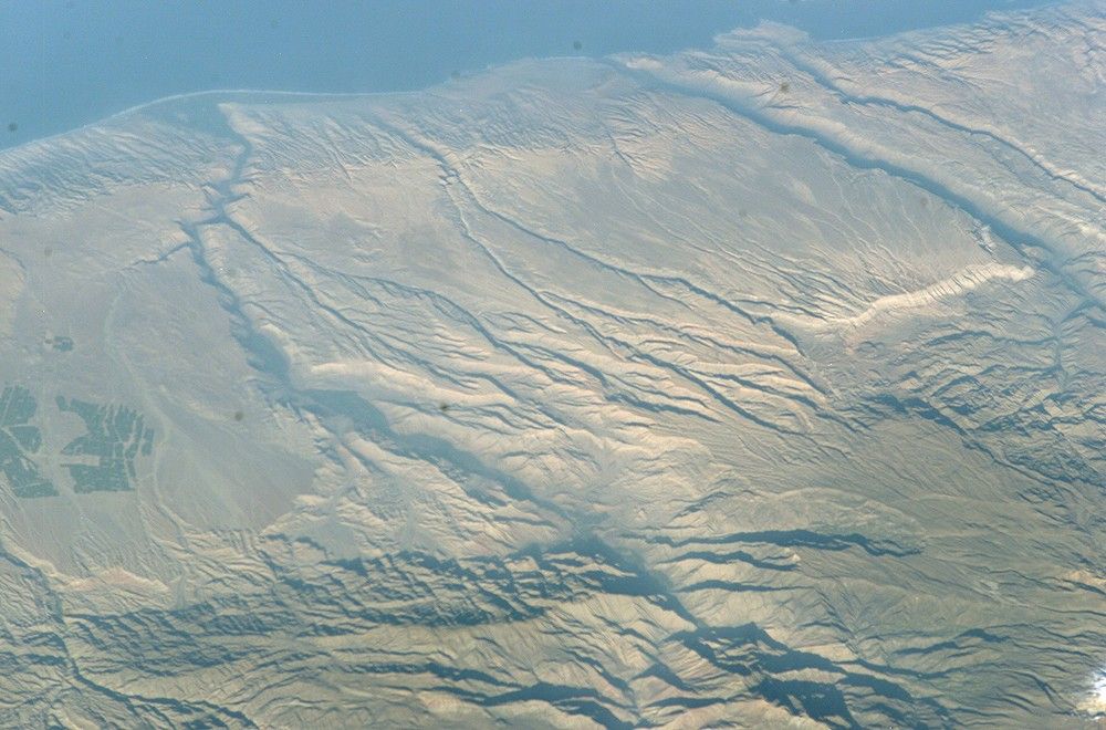 Some of the deepest canyons in the world cut west to the Pacific from the high crest of the Andes Mountains in Peru. This dramatic image taken from the International Space Station provides a birds-eye view down the canyons of the Rio Camana and the Rio Ocona. The low early morning sun highlights the extreme topography created by rapidly uplifting mountains and powerful water erosion by water dropping nearly 10,000 feet (more than 3000 m) in this view. At the edge of the image is the snowy flanks of Nevado Coropuna, the highest mountain in the Cordillera Occidental (6613 meters).