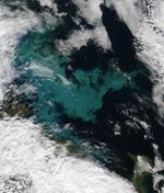 The waters of the Barents Sea off the northeast coast of Norway (bottom left) were bright with a bloom of phytoplankton on August 12, 2008, when the Moderate Resolution Imaging Spectroradiometer (MODIS) on NASA’s Aqua satellite passed overhead and captured this photo-like image. Phytoplankton are tiny plant-like organisms that are the foundation of the ocean food web. Like plants, they contain chlorophyll and other pigments that they use to harvest sunlight for photosynthesis. In northern waters, these organisms are starved for sunlight much of the year, but during the summer months, they explode in colorful blooms such as this one.