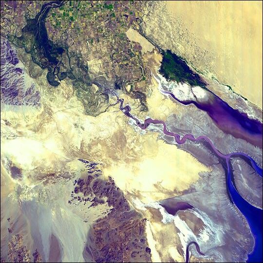 The Gulf of California is framed by Mexico's Baja peninsula on the left and that country's province of Sonora on the right. Phytoplankton blooms are also visible off the west coast of Baja in this scene. The white pixels are clouds.