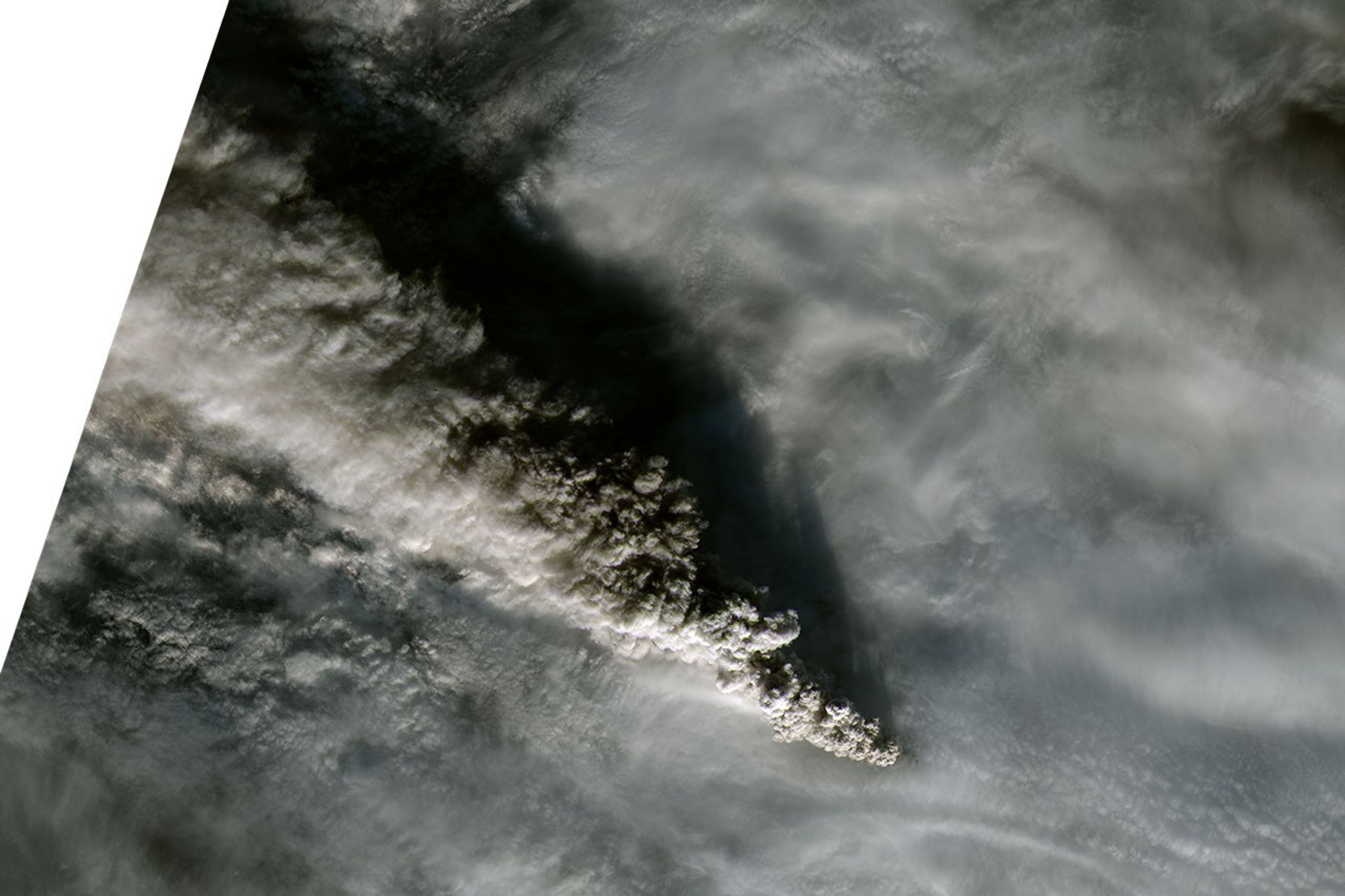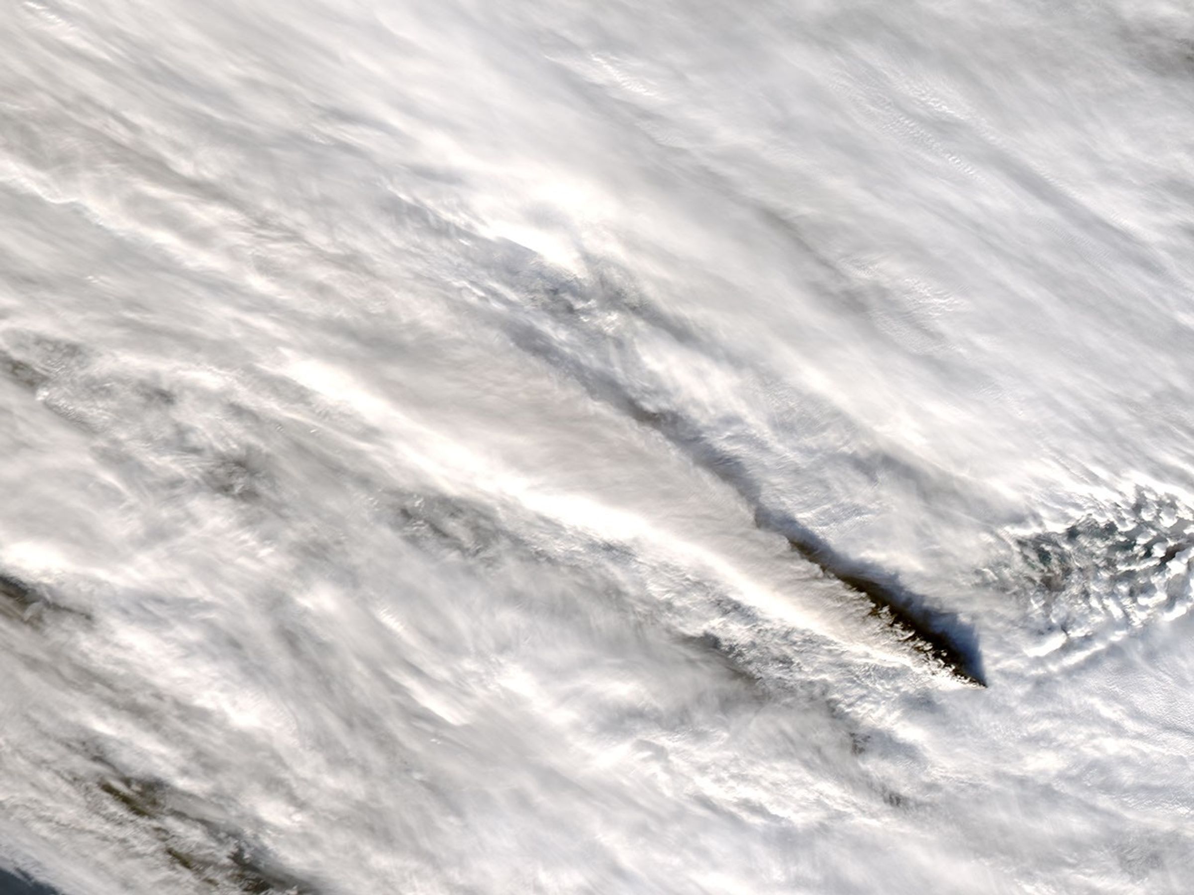 This natural-color satellite image, acquired by the Operational Land Imager (OLI) on the Landsat 8 satellite, shows Pavlof’s volcanic plume well above the cloud deck on November 15, 2014. On the same day, the Moderate Resolution Imaging Spectroradiometer (MODIS) on NASA’s Aqua satellite captured a broader view of the plume.