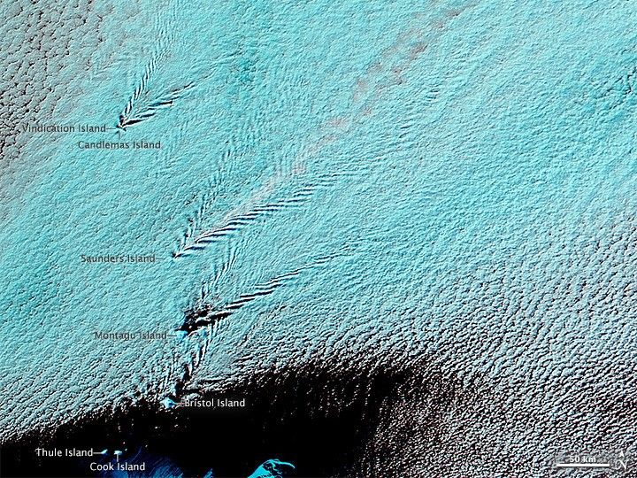 - NASA Earth Observatory (2009, November 25) Wave Clouds from South Sandwich Islands.