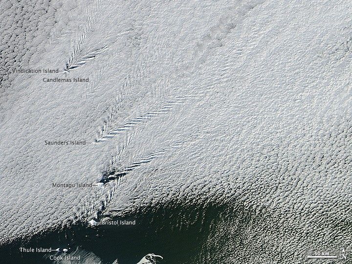 - NASA Earth Observatory (2009, November 25) Wave Clouds from South Sandwich Islands.