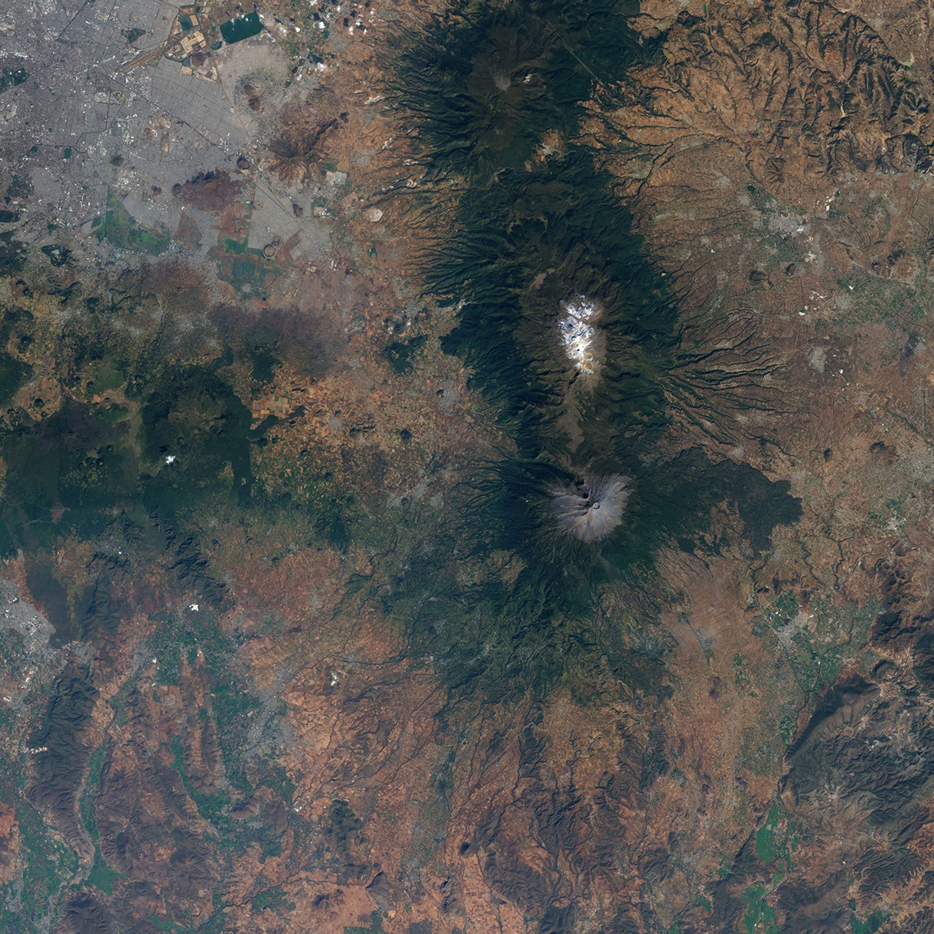 Surveying the larger surrounding region, there is ample evidence of human agriculture to feed the more than 20 million people who live in the greater Mexico City region (to the north).