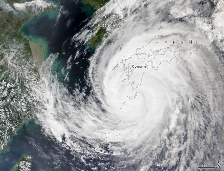 While Fiona was arriving in Puerto Rico, Typhoon Nanmadol blew into southwestern Japan, also bringing flooding rains. Just before midday on September 18, the Visible Infrared Imaging Radiometer Suite (VIIRS) on the NOAA-20 satellite acquired this natural-color image of the storm.