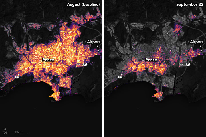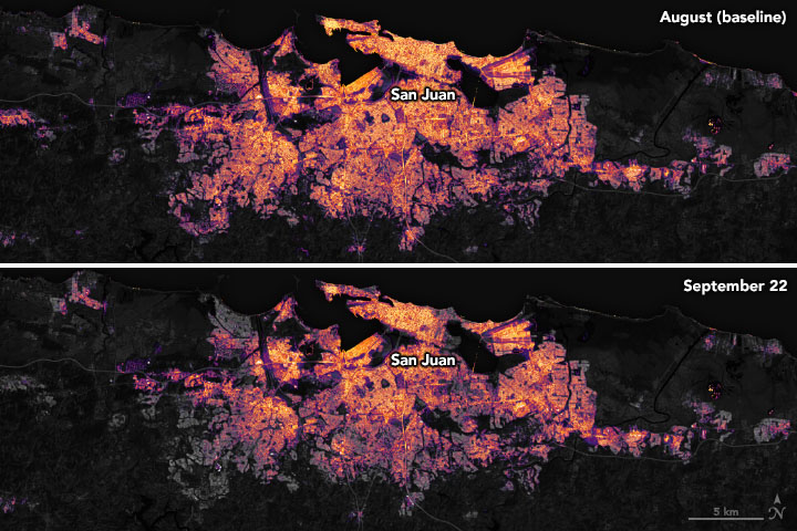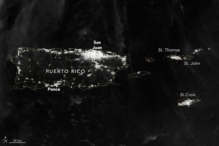 - NASA Earth Observatory (2018, December 13) Night Lights Show Slow Recovery from Maria.