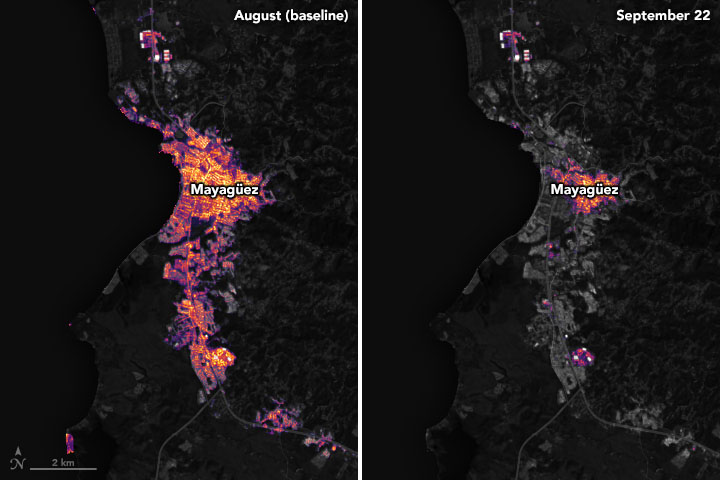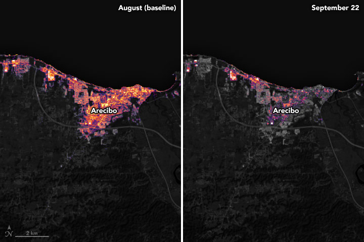 - NASA Earth Observatory (2018, December 13) Night Lights Show Slow Recovery from Maria.