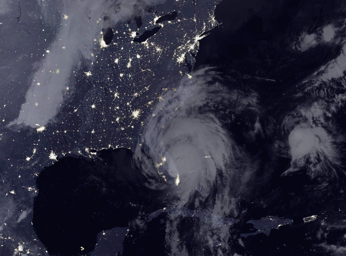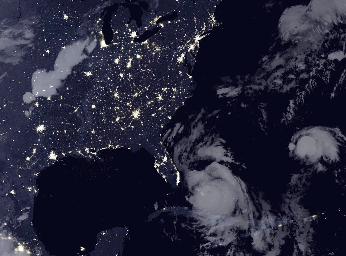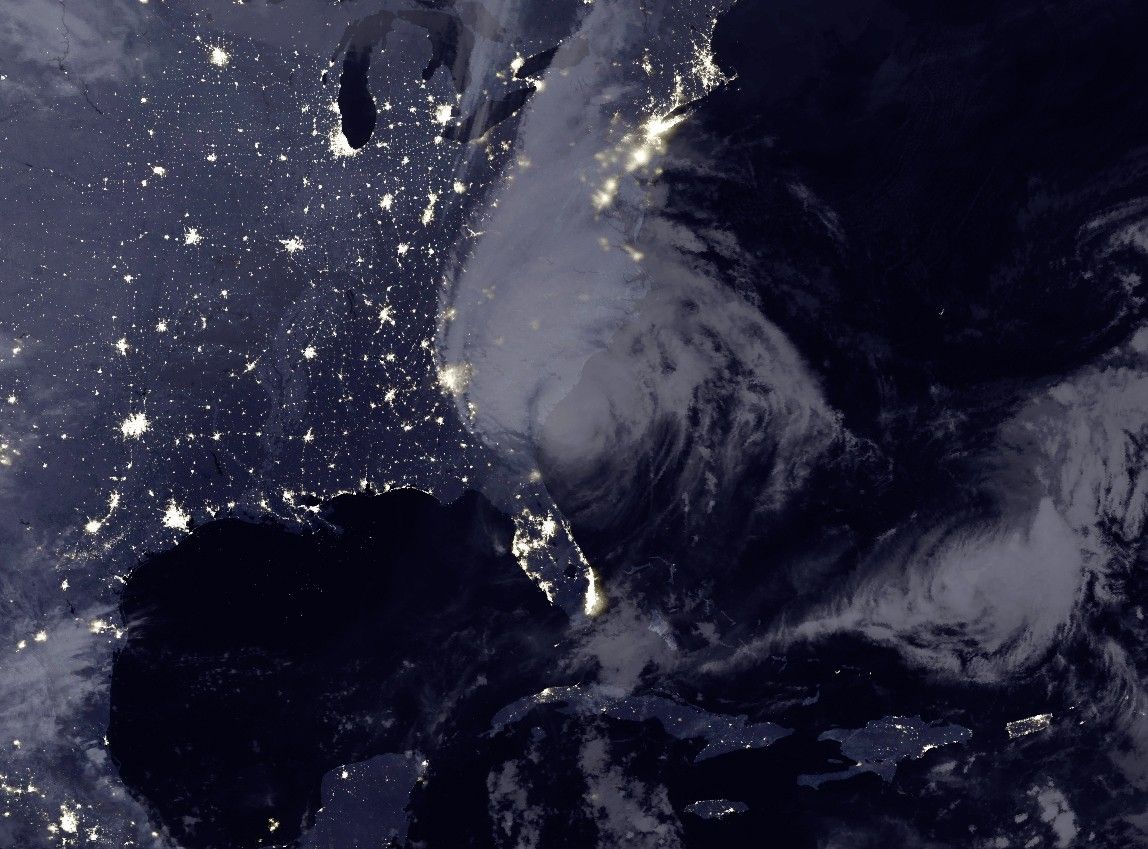From space, the outages were clearly visible. The Visible Infrared Imaging Radiometer Suite (VIIRS) on the Suomi NPP satellite captured these three nighttime images of the Atlantic coast. The image on the left was acquired at 3:14 a.m. Eastern Daylight Time (07:14 Universal Time) on October 6, 2016; the middle image shows the same area at 3:14 a.m. on October 7; the image on the right was acquired at 2:14 a.m. on October 8.