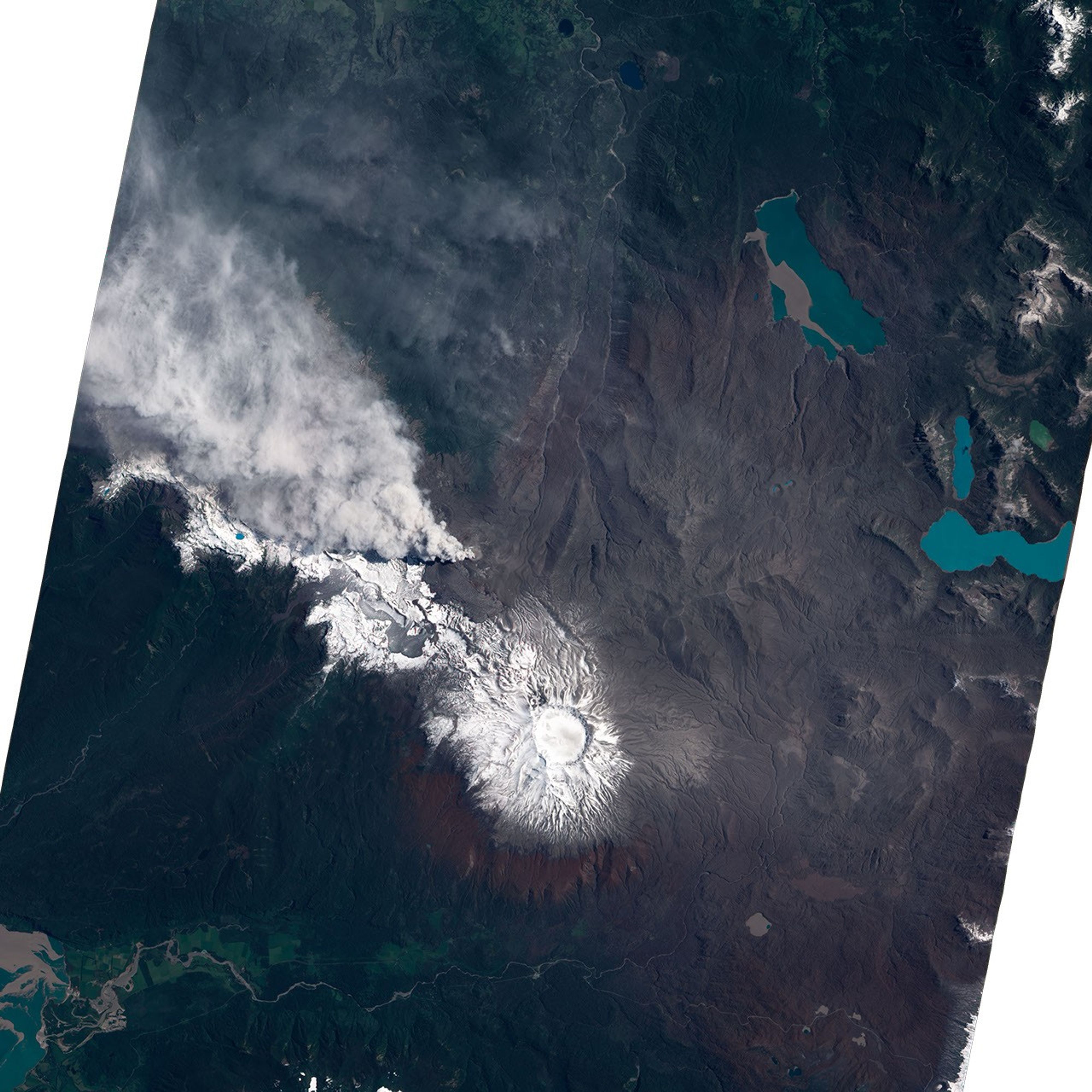 The Advanced Land Imager (ALI) on NASA’s Earth Observing-1 (EO-1) satellite captured this natural-color image on December 23, 2011. The active fissure lies northwest of the Puyehue caldera, and a plume blows from the fissure toward the west and north. This image shows not just ash but also snow on the volcano surface, including the caldera. Because volcanic ash regularly coats the land surface, the pristine snow probably fell recently.