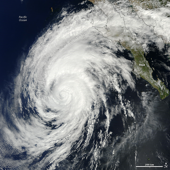 The image below shows Hurricane Simon as it appeared in the late morning on October 5, 2014. The natural-color image was acquired by the Moderate Resolution Imaging Spectroradiometer (MODIS) on NASA's Terra satellite.