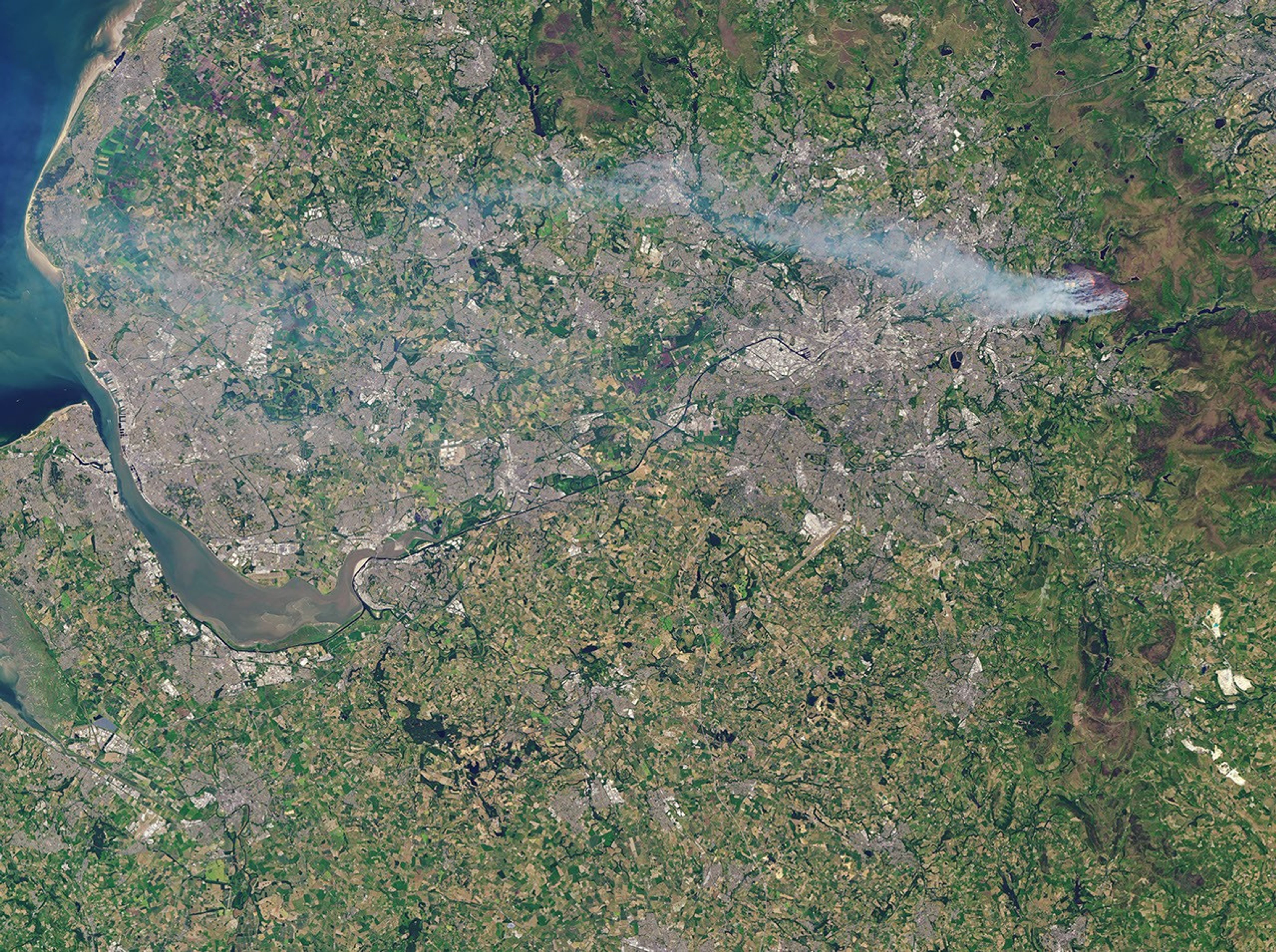 The one blemish on the image above is the thick smoke from the Saddleworth Moor fire near Stalybridge, England. Fires spread across nearly 7 square miles of moorlands. The Operational Land Imager (OLI) on Landsat 8 acquired this natural-color image of the blazes around midday on June 27.