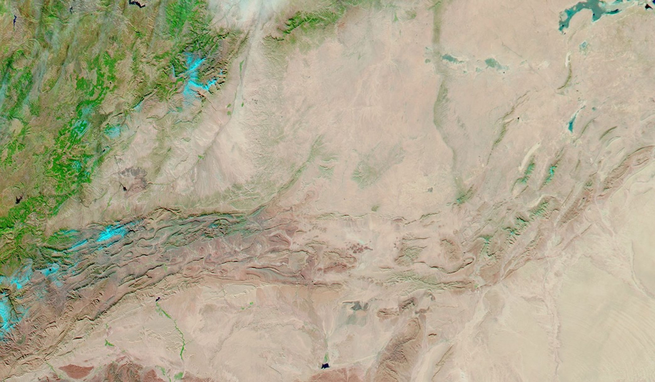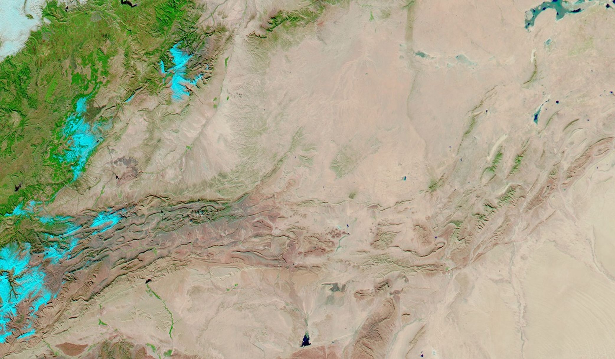 The Enhanced Thematic Mapper Plus (ETM+) on the Landsat 7 satellite acquired a natural-color image (above) of snow in North Africa on December 19, 2016. The scene shows an area near the border of Morocco and Algeria, south of the city of Bouarfa and southwest of Ain Sefra.
