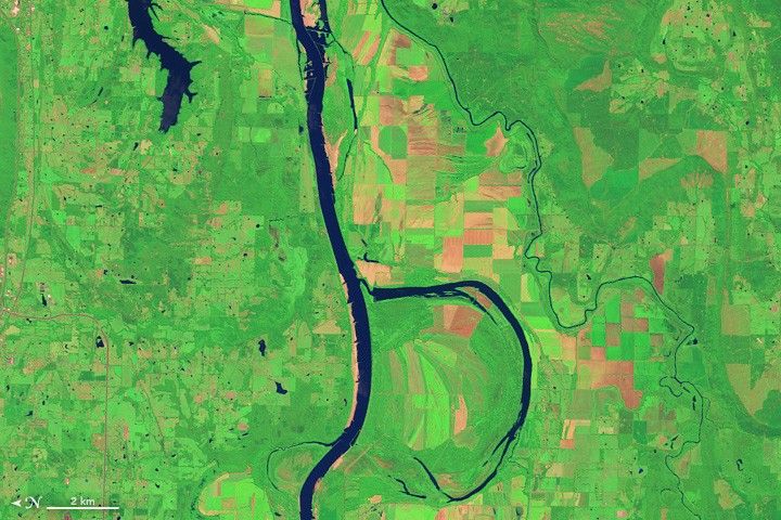 On August 4, 2014, the Operational Land Imager (OLI) on Landsat 8 acquired this image of the Arkansas River and the Holla Bend Wildlife Refuge. In the winter, it is common for the refuge to host 100,000 ducks and geese at once.