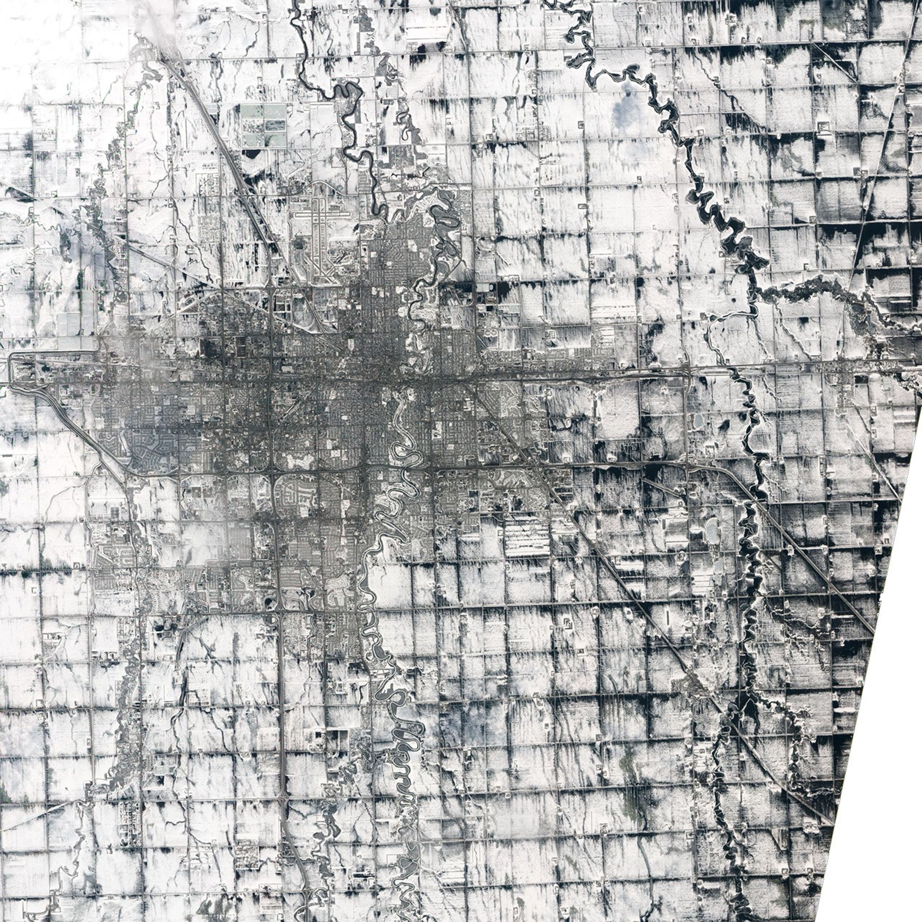 The Advanced Land Imager (ALI) on NASA’s Earth Observing-1 (EO-1) satellite acquired these three natural-color views of snow cover and melting in the area around Fargo, N.D., and Moorhead, Minn. The top image was captured on April 2, 2011, a few days before the river approached major flood stage. The middle image shows some spring melting by March 26, 2011, and the bottom image shows a snowy blanket over the landscape on December 12, 2010.