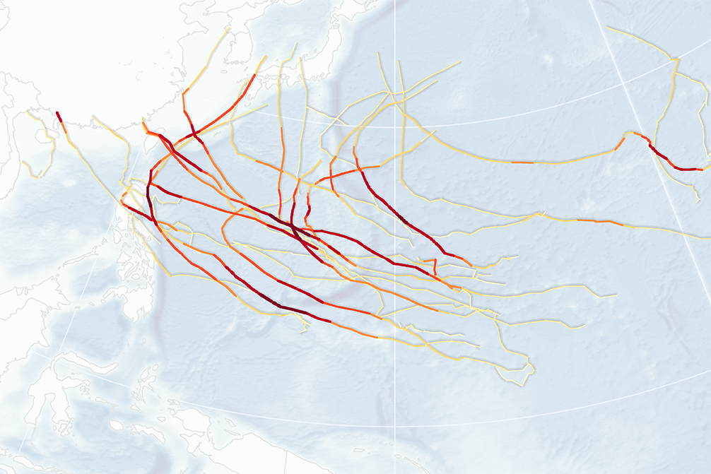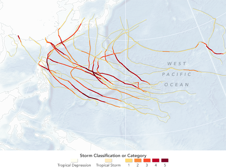 In the western Pacific, near Asia and the islands of Oceania, the season was noteworthy not for the total number of storms, but for the number of intense ones. Fifteen typhoons grew to category 3 strength or higher in 2015, tying records set in 1958 and 1965. El Niño plays a different role in the western Pacific because slight decreases in water temperatures and wind fields push storm formation farther to the east, Klotzbach explained. This allows the storms more time to intensify as they move from east to west with prevailing winds.