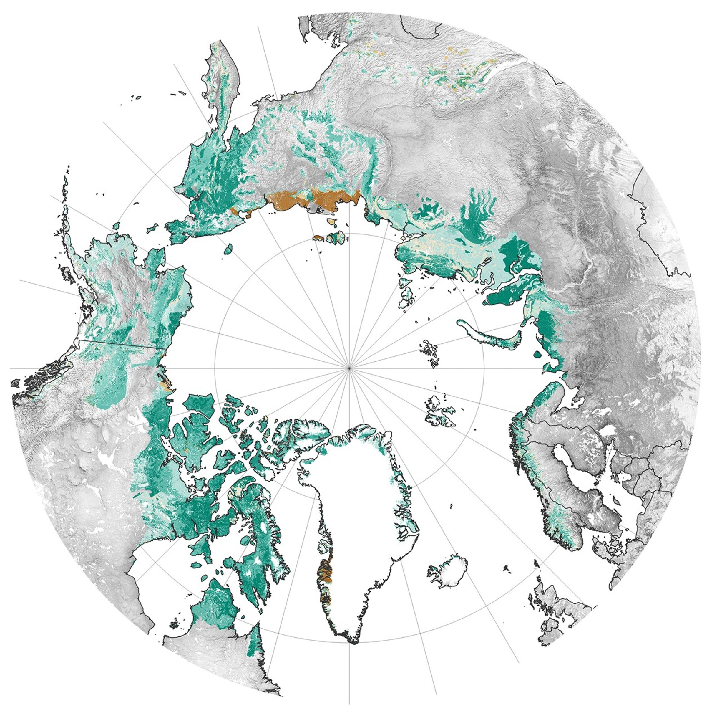 But the changes have not been uniform across the Arctic. For example, research supported by NASA’s Arctic-Boreal Vulnerability Experiment (ABoVE) found that instead of greening, some colder, drier areas have experienced browning. The map below is based on Landsat satellite observations between 2000 and 2020 that show about 27 percent of the Arctic became greener while 8 percent became browner.