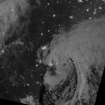 The storm was captured by a special “day-night band,” which detects light in a range of wavelengths from green to near-infrared and uses filtering techniques to observe dim signals such as auroras, airglow, gas flares, city lights, fires, and reflected moonlight. In this case, cloud tops were lit by the nearly full Moon (full occurs on October 27). Some city lights in Texas, Arkansas, and Louisiana are visible through the clouds.
