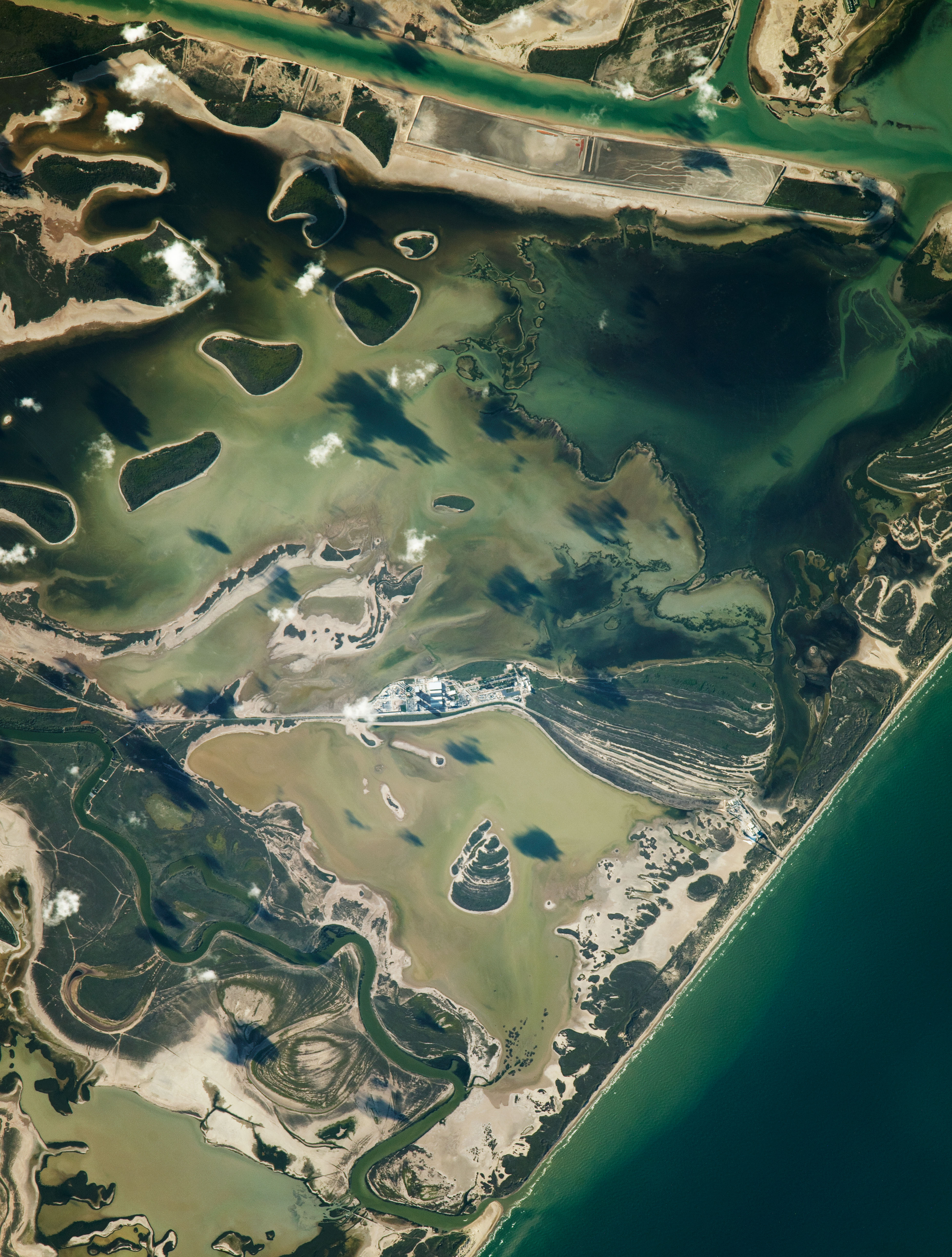 Also visible in this image is the Las Palomas Wildlife Management Area, which includes most of the coastal wetlands centered in this photo. The management area conserves white-winged dove nesting habitat and manages wetlands for wildlife.
