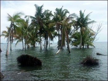The amounts of uplift and subsidence were dramatic as well. The minimum uplift in the northern part of the Andaman Islands was as much as 40 centimeters (1.3 feet), while the minimum subsidence in the southern part was as much as 67 centimeters (2.2 feet). Farther south, the southern tip of Great Nicobar Island sank more than 44 centimeters (1.4 feet). Physical measurements from coral northwest of Simeulue Island documented uplift of up to 150 centimeters (4.9 feet). Meltzner stresses that the amounts he estimated from satellite data were the minimum elevation change that would have been needed to account for the differences in the pre-and post-quake satellite images, not necessarily the exact elevation change. Later studies found elevation changes of 1 to 2 meters in some places.