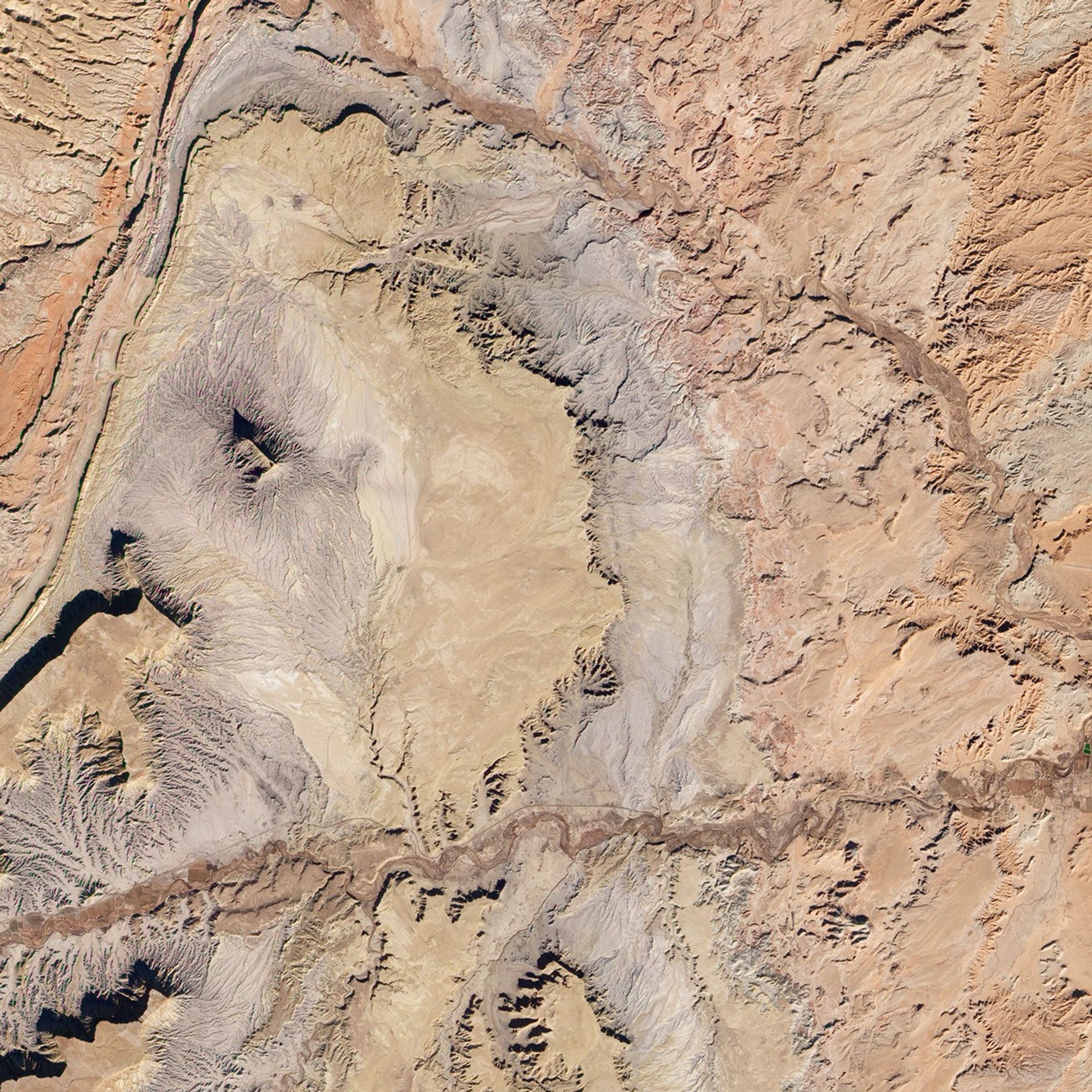 Remnants of these inverted channels are visible in this view of part of the San Rafael Swell of central Utah. The Advanced Land Imager (ALI) aboard NASA’s Earth Observing (EO-1) satellite acquired the image on November 25, 2012. One of the most prominent features is Kissing Camel Ridge, the curving feature in the middle of the top image. The lower image shows Kissing Camel Ridge from the ground.
