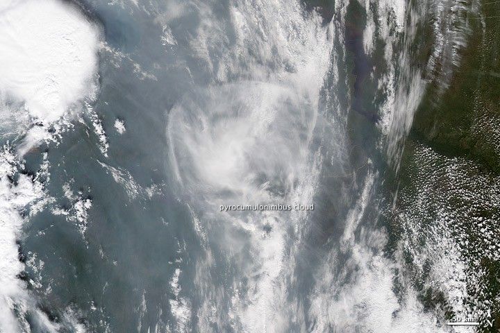 Was OMI’s observation this summer an indicator that a similar firestorm had erupted in Russia? Fromm suspected that it was, and he set out to find proof of a pyrocumulonimbus cloud in other satellite data.