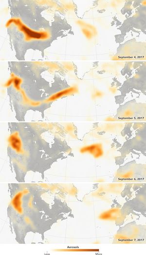 While pyrocumulonimbus clouds are probably not unusual, only about ten have been identified in scientific literature. As this series of images documents, pyrocumulonimbus clouds pump soot from fires high into the atmosphere. Once in the stratosphere, above the part of the atmosphere where weather occurs, aerosols can travel long distances. In this recent case, the smoke from Russian fires reached the Eastern United States. The smoke stays in the stratosphere for a long time because it is above the part of the atmosphere where weather occurs, so it doesn’t rain or fall out as easily.