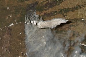 Occasionally, if the superheated air rises fast and high enough, it forms a towering thundercloud. Like the thunderstorms that form on a hot summer’s day, the tops of these cauliflower-shaped clouds reach high enough into the atmosphere that ice crystals form. Those ice crystals electrify the cloud, creating lightning. Called pyrocumulonimbus clouds, the clouds are capable of dangerous lightning, hail, and strong winds. One such firestorm in 2003 pelted Canberra, Australia, with large, soot-darkened hail, produced a damaging tornado, and generated strong winds that caused the fire to explode into neighborhoods in the capital city.