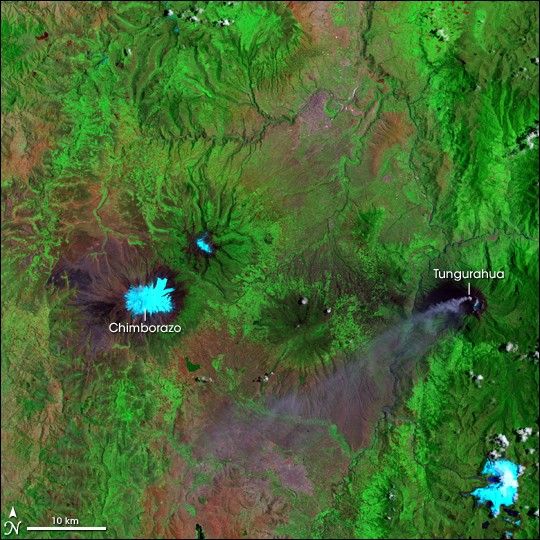 This astronaut photograph features the northern end of the salar and the dormant volcano Mount Tunupa (image center). This mountain is high enough to support a summit glacier, and enough rain falls on the windward slopes to provide water for small communities along the base. The dark volcanic rocks comprising Mt. Tunupa are in sharp contrast with the white, mineral-crusted surface of the salar. The major minerals are halite—common table salt—and gypsum—a common component of drywall.