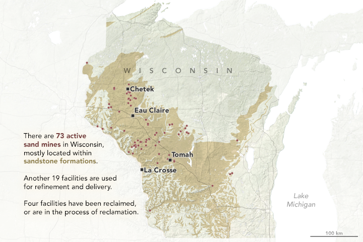 NASA Earth Observatory images by Joshua Stevens, using Landsat data from the U.S. Geological Survey , mining data from the Wisconsin Department of Natural Resources , and geologic information from the U.S. Geological Survey Mineral Resources Program . Story by Adam Voiland.