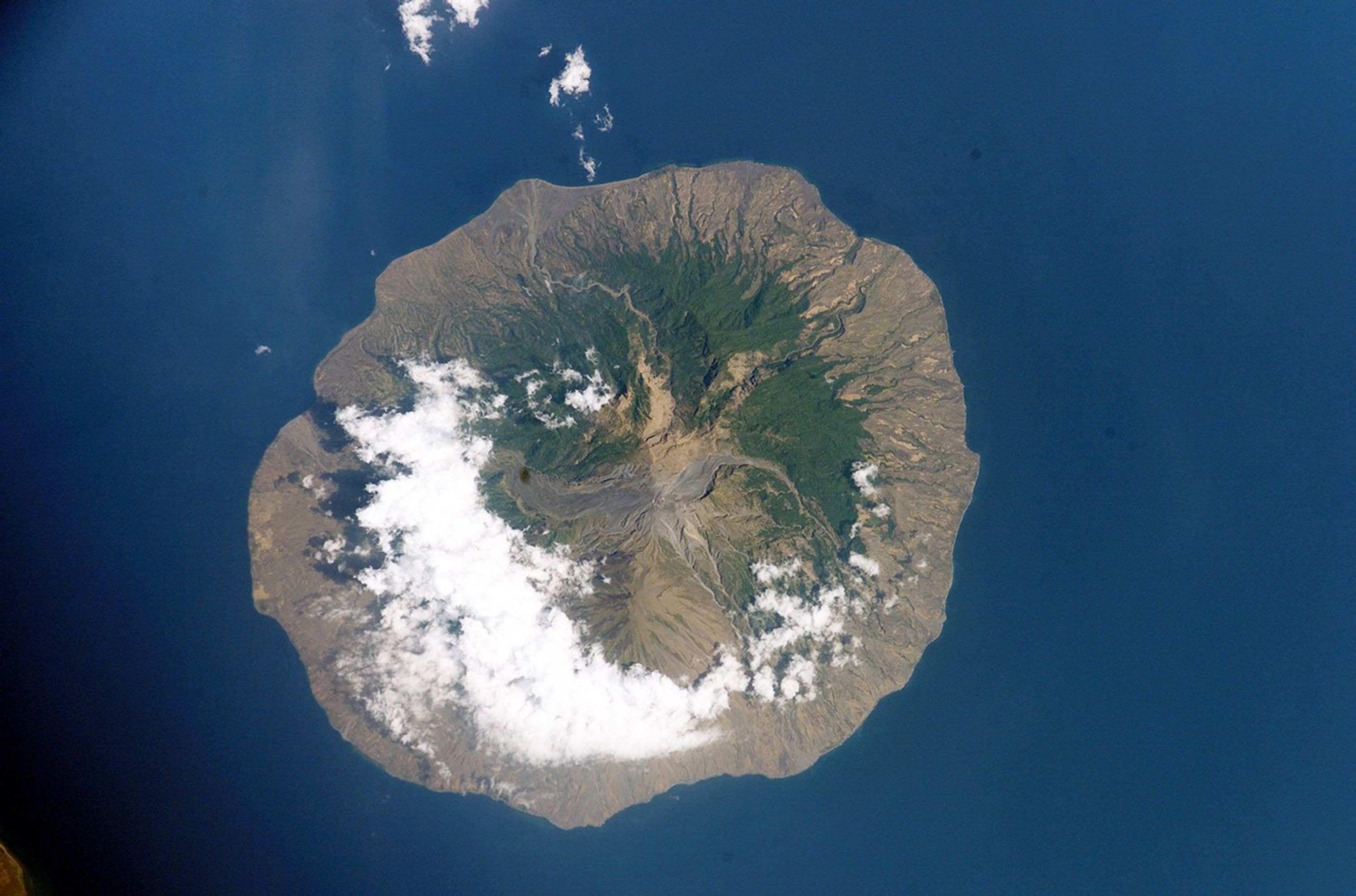In 1985, the small Indonesian island of Sangeang Api (for scale, the island is 13 km wide) off the northeast coast of Sumbawa began to erupt. Within a month, the 1250 inhabitants had evacuated to Sumbawa. The eruption lasted until 1988. The lava and pyroclastic flows—the wide channel running west from the summit—are still easily traced on this image taken last week by Space Shuttle astronauts (STS-112) . Today, the island’s summit crater (1949 m) produces intermittent steam clouds.